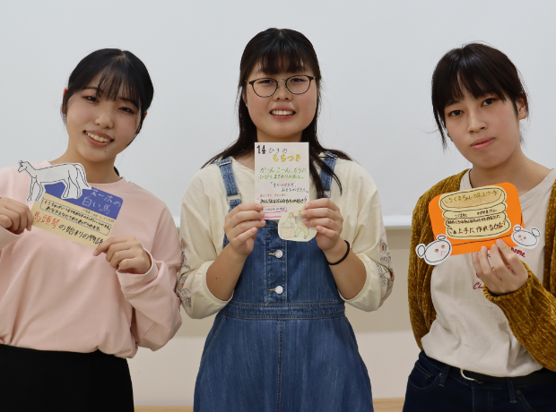 中国地方で最初に開講「認定絵本士養成講座」絵本の世界についての知識を深めるほか、読み聞かせや子どもたちが喜ぶ本を探し出して紹介するスキル、絵本の世界観を伝える豊かな感性や表現力を養います。認定絵本士の資格を得ることで保育士としての強みが持て、また保育所や学校、図書館での絵本に関するイベントの開催など、活躍の場が広がります。
